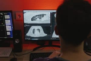 a man looking at medical images on computer screen